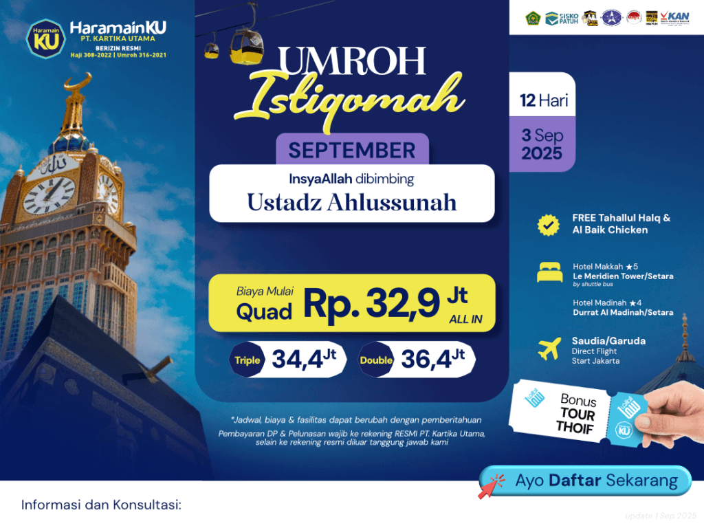 KETENTUAN : Jadwal, Biaya, dan Fasilitas dapan berubah sewaktu-waktu mengikuti kebijakan pemerintah KSA dan Indonesia