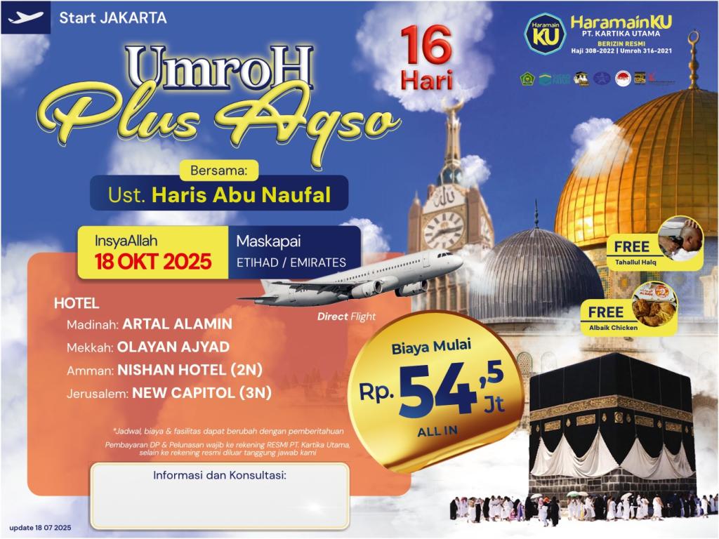 KETENTUAN : Jadwal, Biaya, dan Fasilitas dapan berubah sewaktu-waktu mengikuti kebijakan pemerintah KSA dan Indonesia
